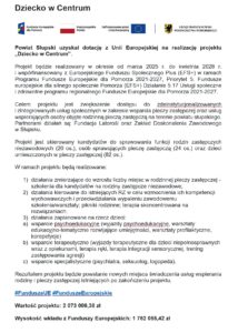 Powiat Słupski uzyskał dotację z Unii Europejskiej na realizację projektu „Dziecko w Centrum”.